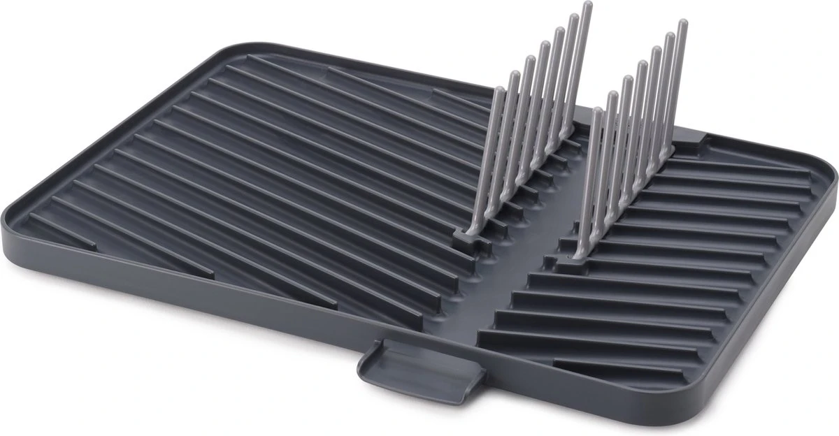 Met het Afdruiprek Flip-Up van Joseph Joseph doe je eenvoudig de afwas! Het afdruiprek is zo ontworpen dat je deze makkelijk uitklapt, zodat je genoeg ruimte hebt voor jouw afwas. Tijdens de afwas wordt het water eenvoudig afgevoerd via het afvoersysteem. Het afdruiprek beschikt over anti-slipvoetjes, zodat deze steviger op het aanrecht staat. Daarnaast heeft het een geïntegreerd bordenrek. Deze kan je uitklappen als je de borden hebt afgewassen, maar heb je juist ruimte voor jouw andere servies nodig, dan klap je deze gewoon weer in. Ben je klaar met de afwas? Dan klap je het afdruiprek gewoon in, zodat deze weinig ruimte in beslag neemt.