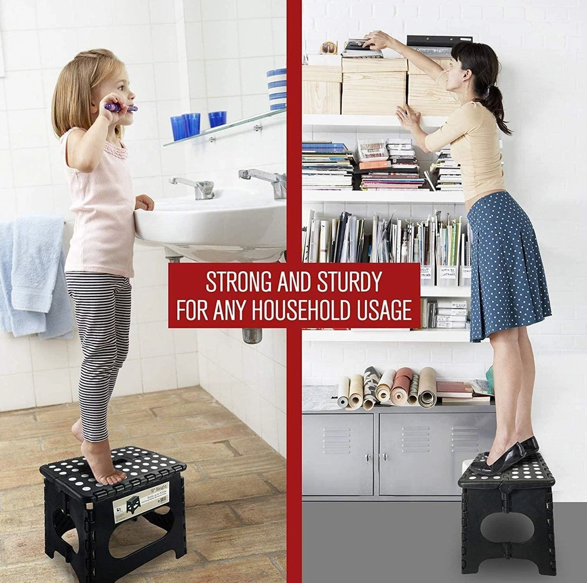 Op zoek naar een handig krukje die niet veel ruimte opneemt en toch ervoor zorgt dat je bij de bovenste plank kunt komen? Dan is deze vouwbare opstapruk wat voor jou! De kruk vouwt zich in elkaar waardoor hij overal kan worden opgeborgen en niet in de weg staat. Verder is het ook leuk voor uw kind, hij/zij kan erop gaan zitten aan tafel, op staan in de badkamer of gezellig helpen in de keuken.