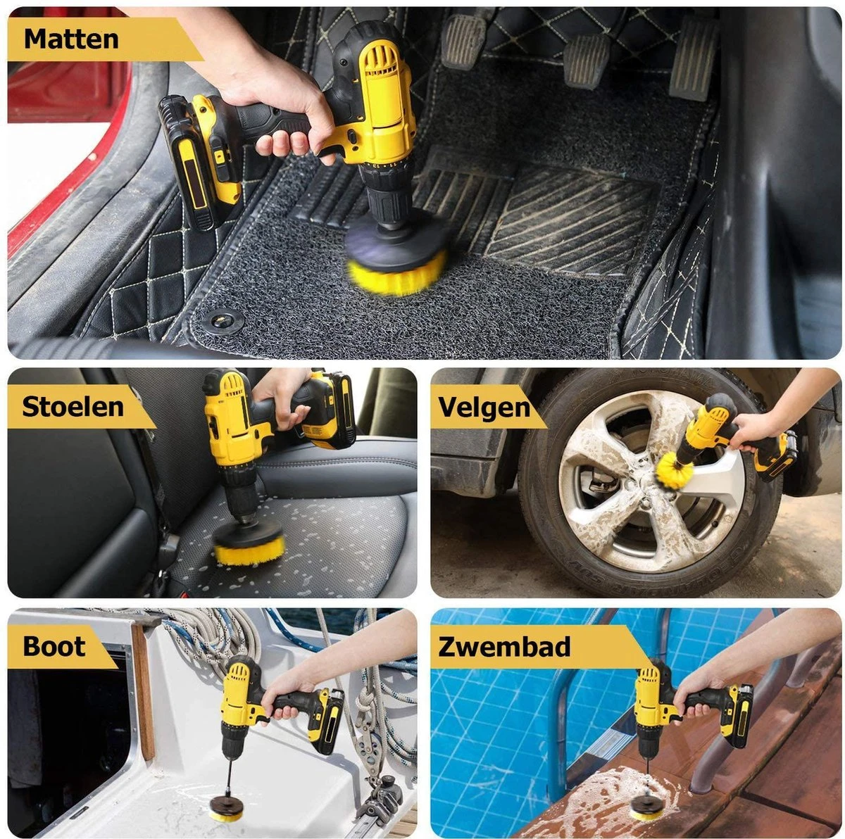 ESSIBLE Schrobborstel – Polypropyleen – Borstel Boormachine – Schrobborstel – Schuurborstel – Automatische Reiniging – 3 Delige Borstelset Voor Boormachine