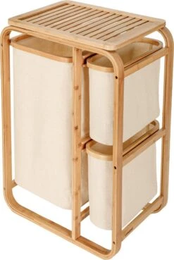 Lumaland Wasmand Van Bamboe – 1 XL Vak + 2 Compacte Vakken 49,5 X 33 X 71 Cm Beige