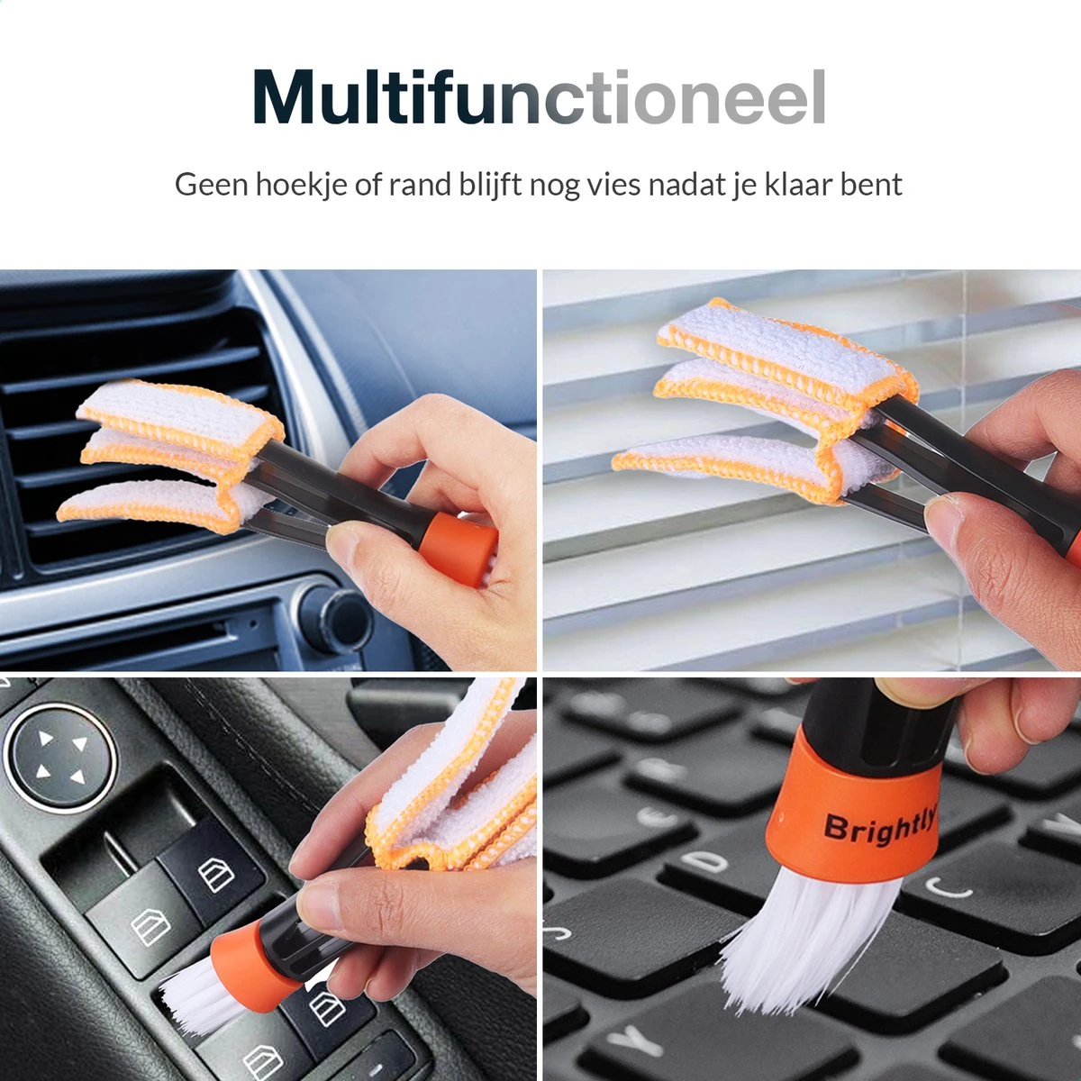 OOK KOZIJNEN SNEL SCHOONMAKEN – De meeste lamellen reinigers zijn niet heel veelzijdig. Vaak moet je alsnog een extra borstel aanschaffen om je kozijnen schoon te maken. Met de BRIGHTLY lamellen reiniger is dit niet langer noodzakelijk. Aan de achterkant van de lamellen reiniger zit daarom een borstel waardoor je naast je lamellen ook de kleine hoekjes en kiertjes van je kozijn in een handomdraai schoonmaakt.