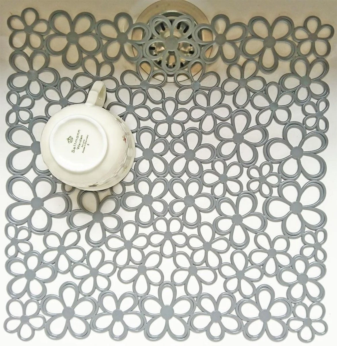 Merkloos Papillon - 2 Stuks Gootsteenmat - Bloem Grijs - 31,5 X 31,5 Cm - Afbeelding 3