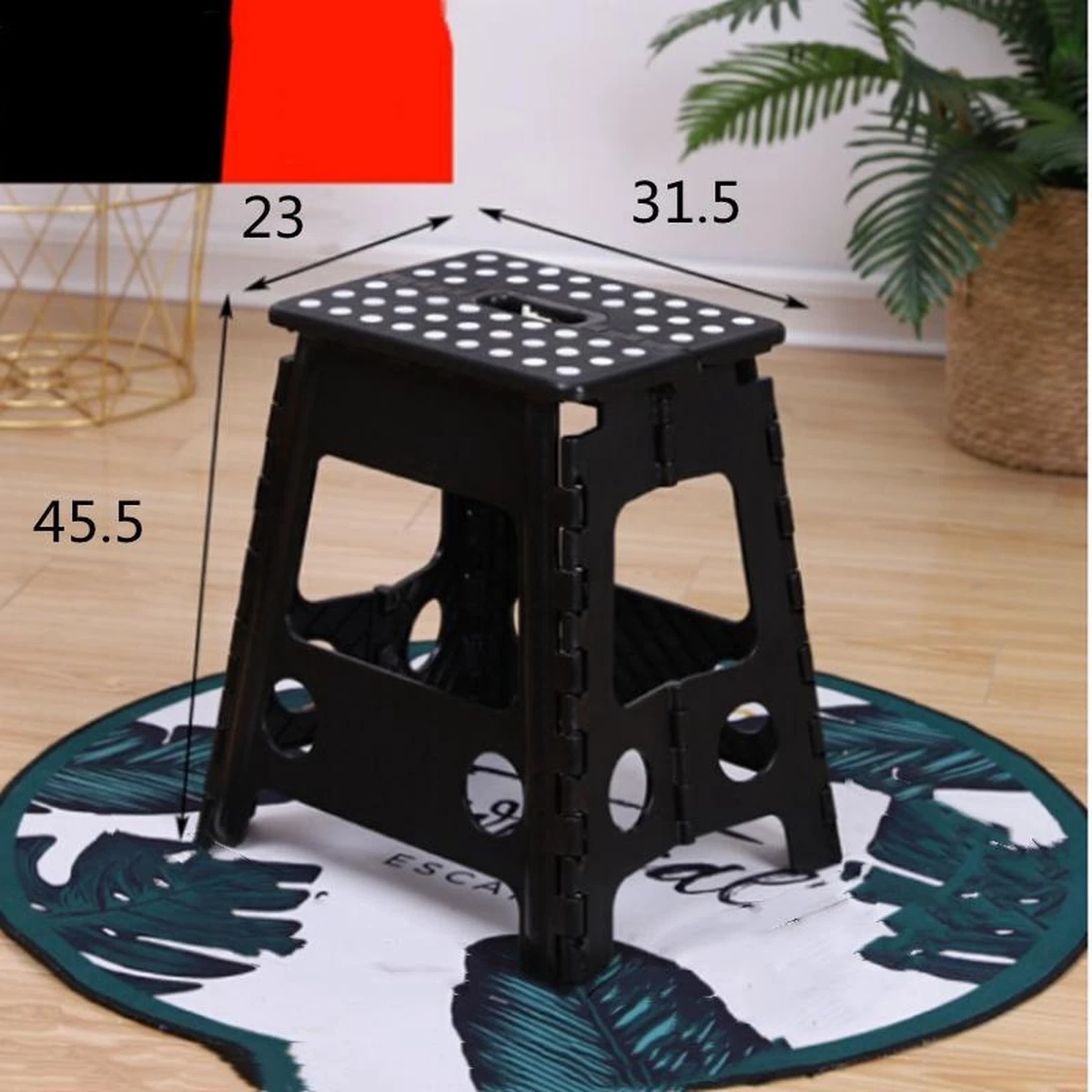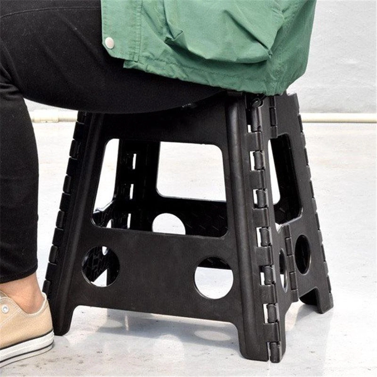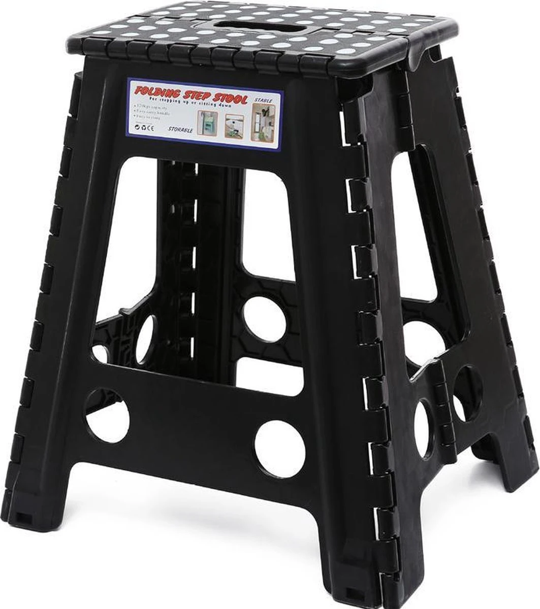 Merkloos Verdikt Kunststof Klapkruk-draagbaar-opvouwbare Kruk-Met Antislip Oppervlak Zwart 29x22cmx45cm