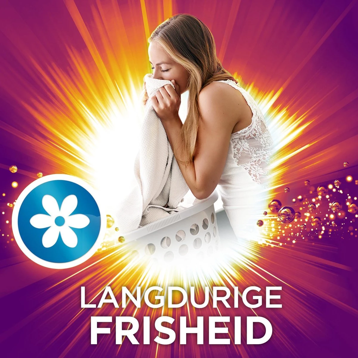 De langdurige frisheid wordt gecreëerd door het Active Fresh Effect, dit zorgt ervoor dat onaangename geurtjes zullen verdwijnen. Hierdoor blijft je wasgoed langdurig fris, waardoor kleding langer blijft ruiken alsof het pas gewassen is.