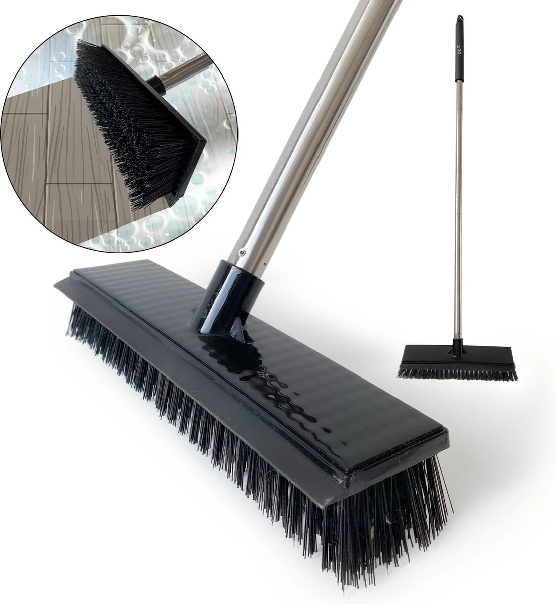 Schrobbezem Zwart Luiwagen Met Steel 120cm – Tuinbezem Straatbezem – Schoonmaak Schrobber Kunststof Harde Bezem – Schrobborstel En Schuurborstel