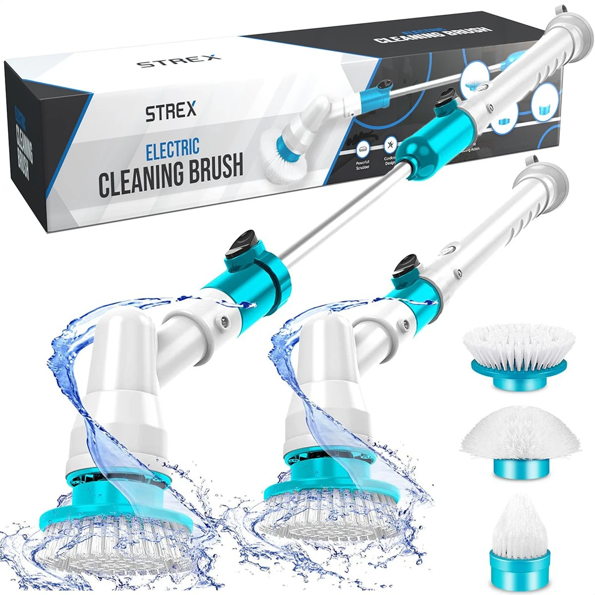 Strex Elektrische Schoonmaakborstel – Draadloze Schrobborstel – Schrobber – 3 Opzetstukken – Telescoopsteel – Poetsmachine Met Krachtige Accu