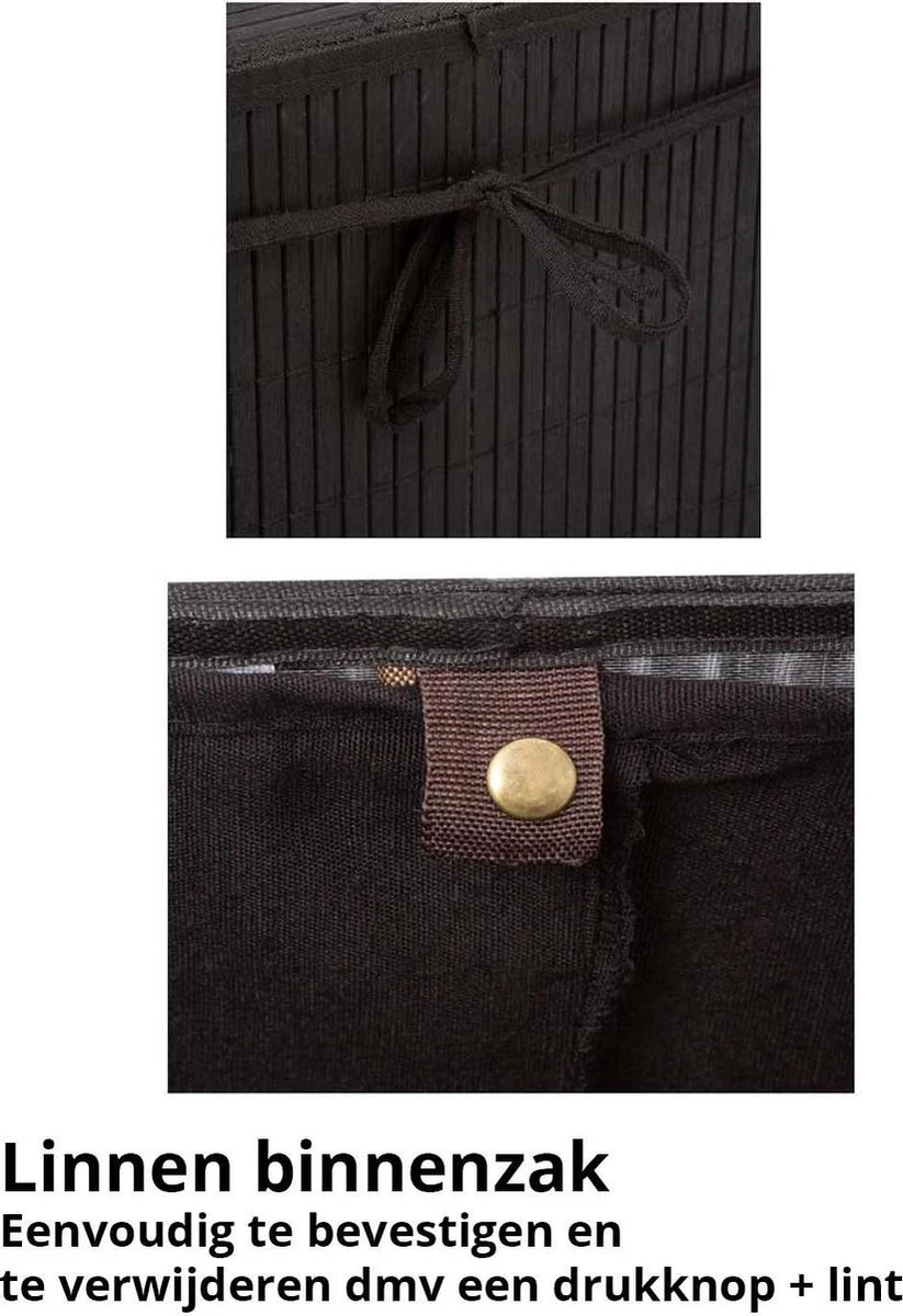 Wasmand Met Deksel 60 l – 40x30x50cm – Bamboe – Zwart
